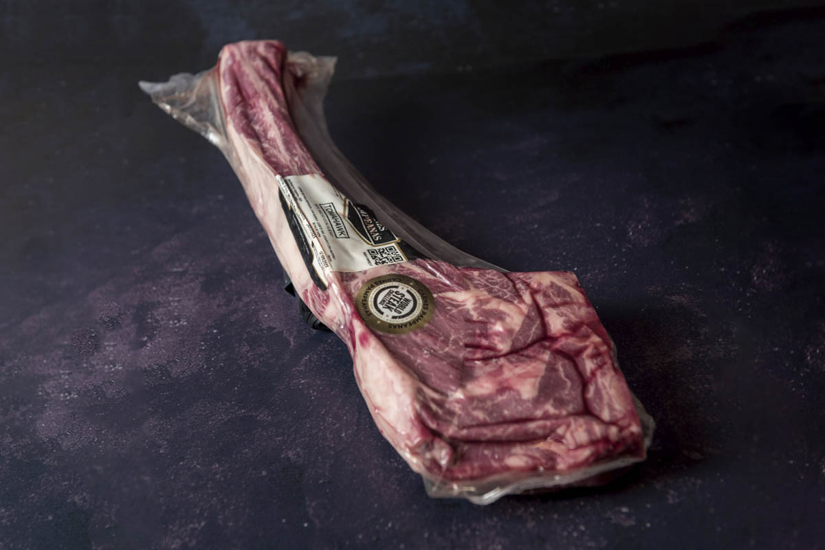 Corte que proviene de la parte central del costillar, abarcando las cinco costillas centrales del animal, de unos 25 cm de largo aproximadamente, con las que se obtienen las mejores tiras de asado. La combinación de la infiltración de grasa natural de este corte y el marmoleado único, otorga a esta carne un sabor y aroma únicos, que lo convierten sin duda en uno de nuestros mejores productos. Para los amantes del corte con hueso, es ideal para hacer a la parrilla.Cocción